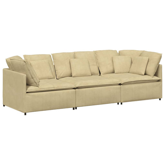 Divano Modulare con Poggiapiedi e Cuscini Beige