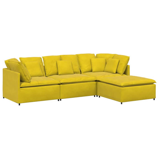 Divano Modulare con Poggiapiedi e Cuscini in Velluto Giallo