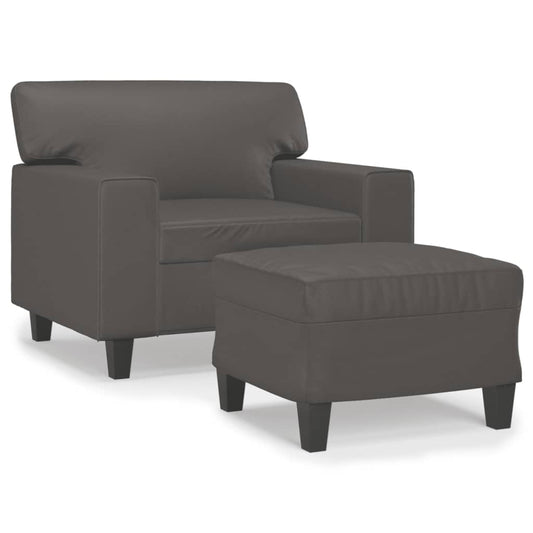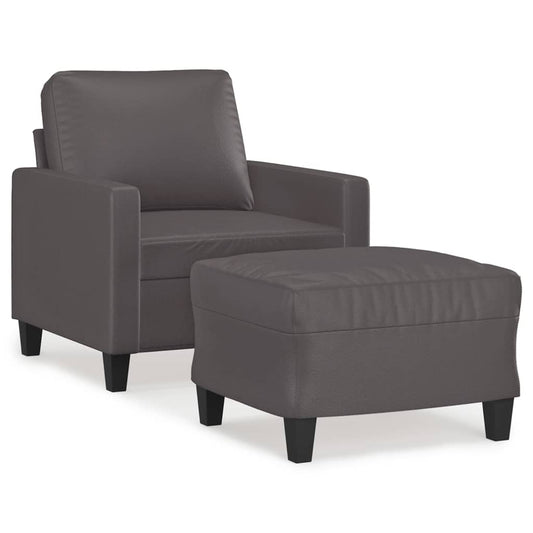 Poltrona con Poggiapiedi Grigio 60 cm in Similpelle