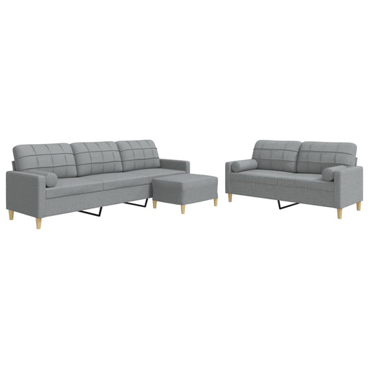 Set di Divani 3 pz con Poggiapiedi Grigio Chiaro in Tessuto