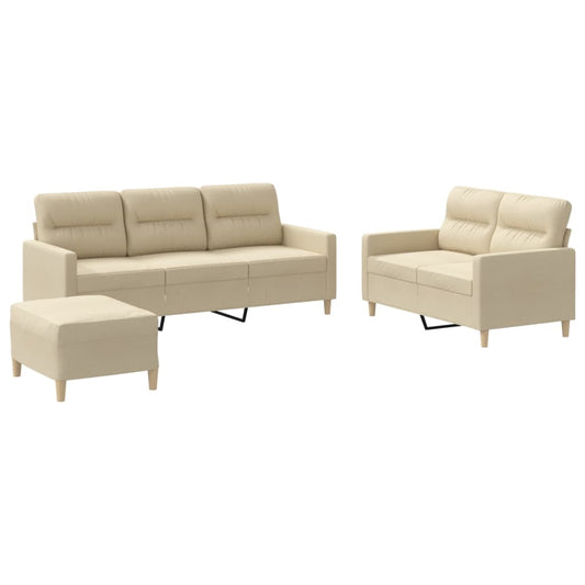 Set di Divani 3 pz con Cuscini Crema in Tessuto