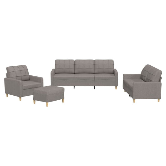 Set di Divani 4 pz con Poggiapiedi Tortora in Tessuto