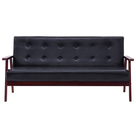 Divano Chesterfield a 3 Posti in Finta Pelle Nero