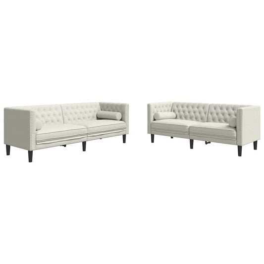Set Divani Chesterfield 2pz con Cuscini Crema Velluto