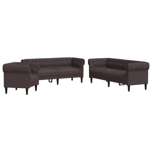 Set di Divani 3 pz Marrone Scuro in Tessuto