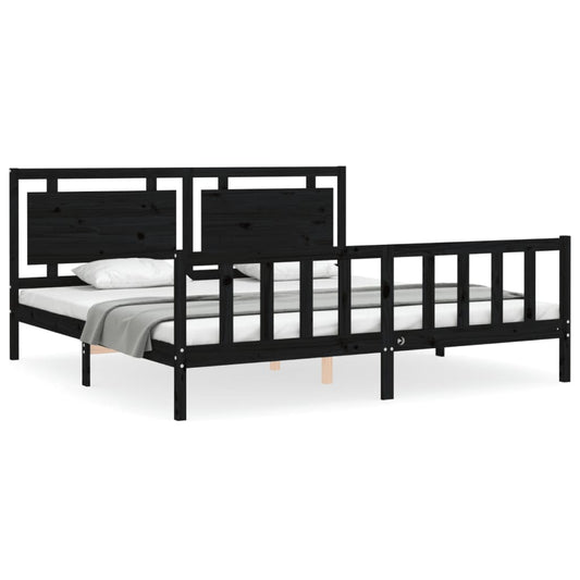 Giroletto con Testiera Nero 200x200 cm in Legno Massello