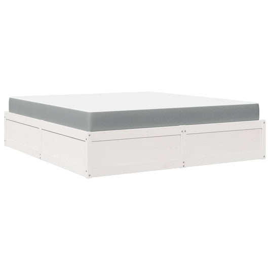 Letto con Materasso Bianco 180x200 cm in Legno Massello di Pino