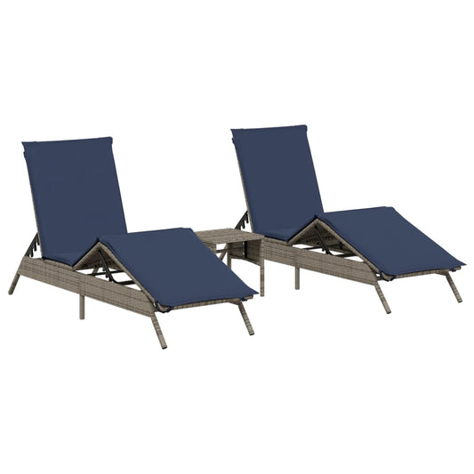 Lettini Prendisole 2pz con Tavolino Grigio Chiaro in Polyrattan