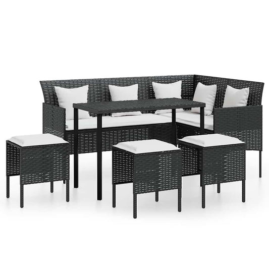 Set Divano a L con Cuscini 5 pz Nero in Polyrattan