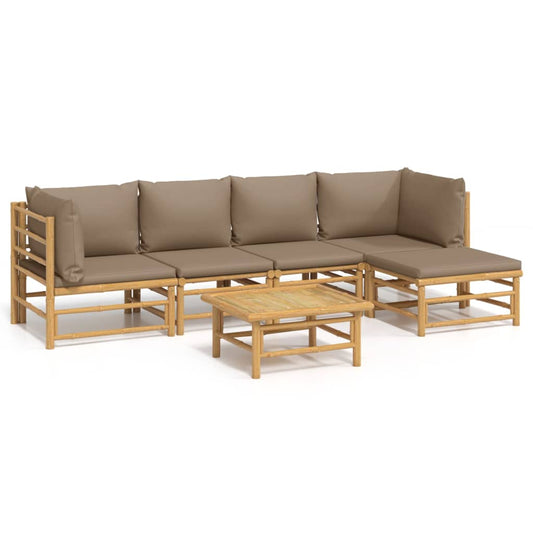 Set Salotto da Giardino 6pz con Cuscini Tortora Bambù