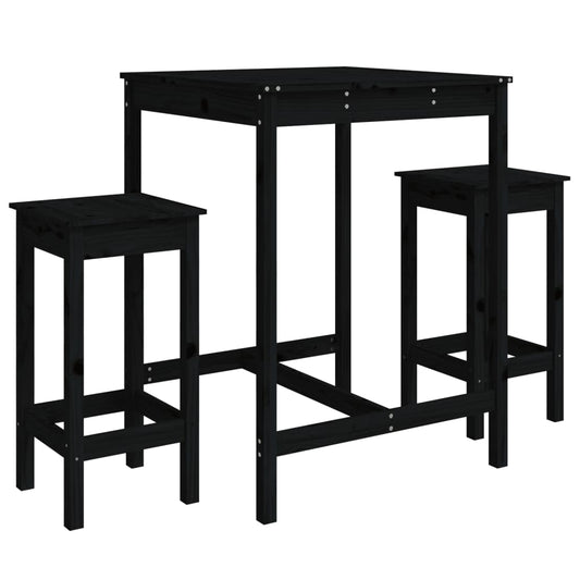 Set Bar da Giardino 3 pz Nero in Legno Massello di Pino