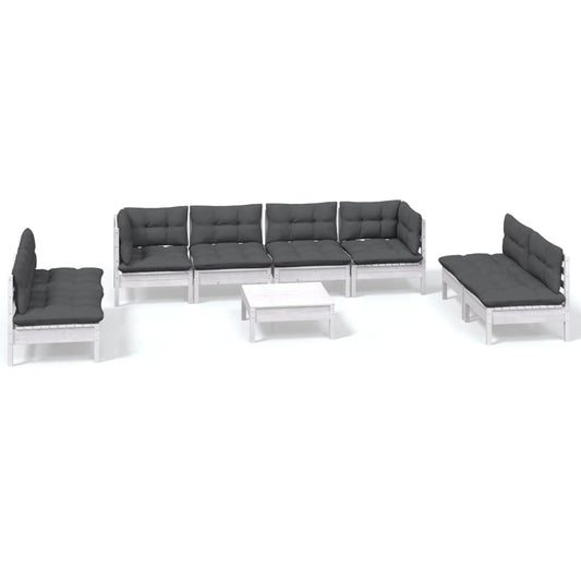 Set Divani da Giardino 8 pz con Cuscini Bianchi Legno di Pino