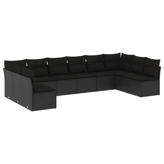Set Divani da Giardino 10pz con Cuscini in Polyrattan Nero