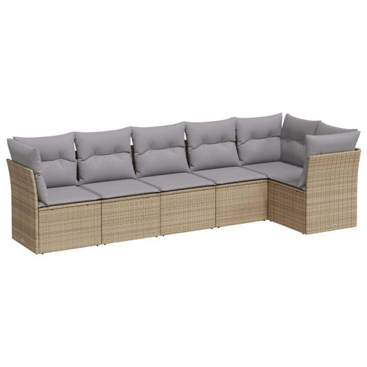 Set Divano da Giardino 6 pz con Cuscini Beige in Polyrattan