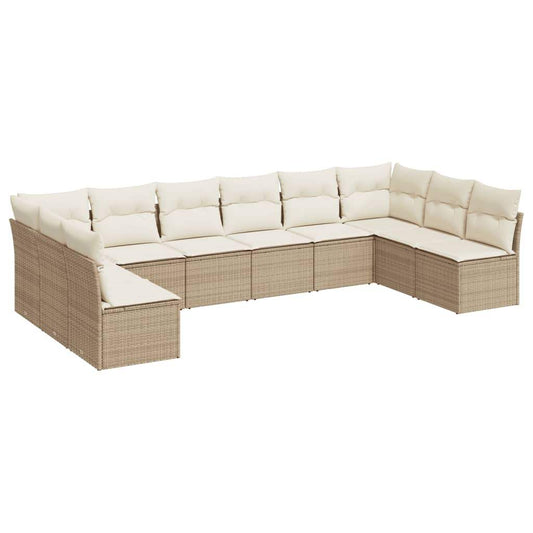 Set Divano da Giardino 10 pz con Cuscini Beige in Polyrattan