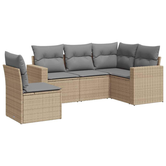 Set Divano da Giardino 5 pz con Cuscini Beige in Polyrattan