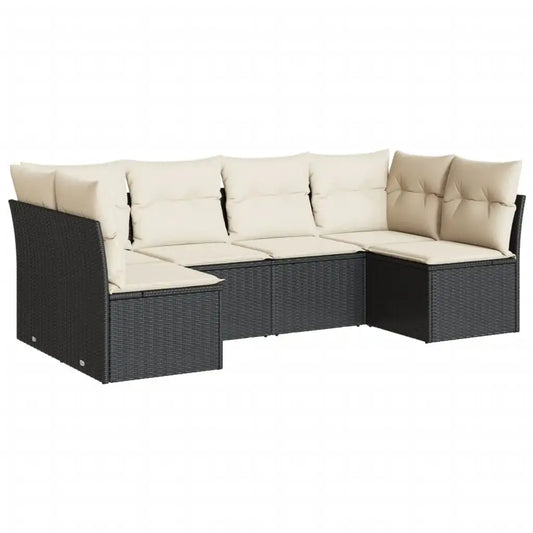 Set Divano da Giardino 6 pz con Cuscini Nero in Polyrattan