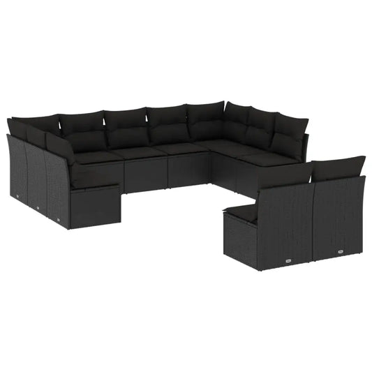 Set Divani da Giardino 11 pz con Cuscini in Polyrattan Nero