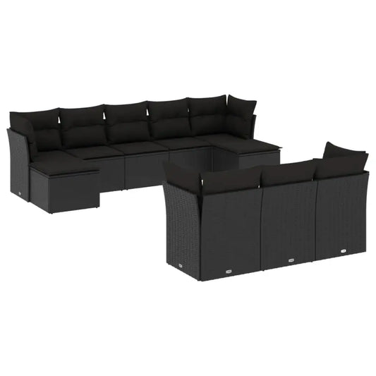 Set Divani da Giardino 10pz con Cuscini in Polyrattan Nero