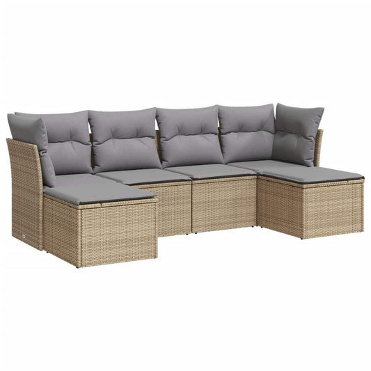 Set Divano da Giardino 6 pz con Cuscini Beige in Polyrattan