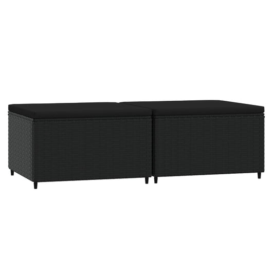 Poggiapiedi da Giardino con Cuscini in Polyrattan Nero