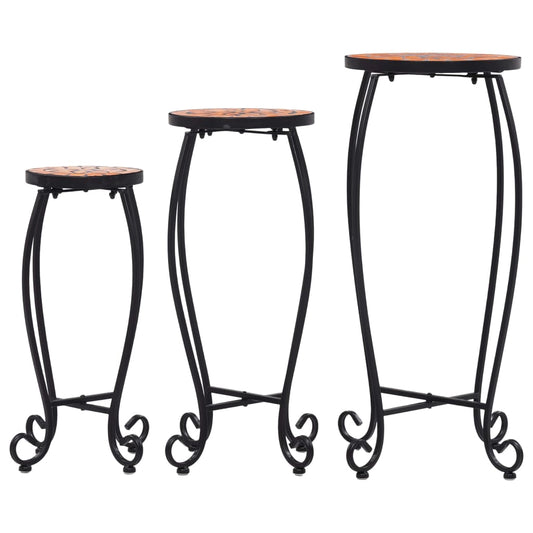 Tavolini con Mosaico 3 pz Terracotta in Ceramica