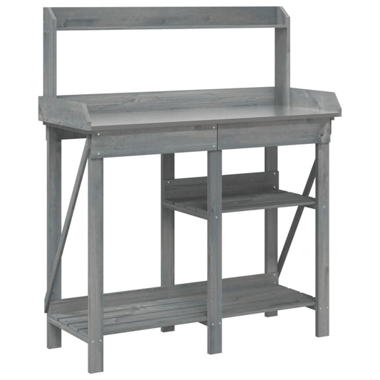 Panca Porta Vasi con Ripiani Grigia in Legno Massello di Abete