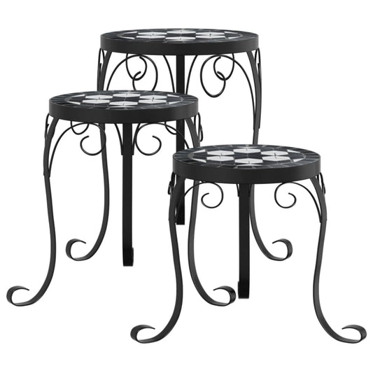 Supporti per Piante 3 pz Nero e Bianco in Ceramica