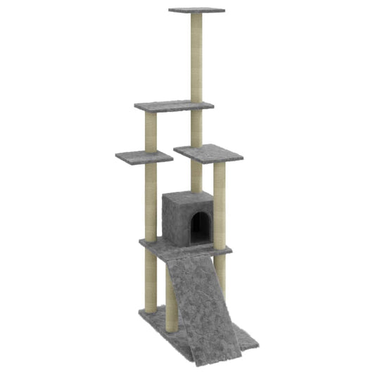 Albero per Gatti con Tiragraffi in Sisal Grigio Chiaro 183 cm