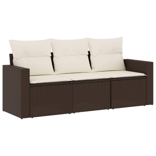 Set Divano da Giardino 3 pz con Cuscini Marrone in Polyrattan