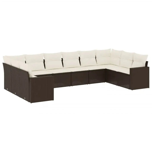 Set Divani da Giardino 10pz con Cuscini in Polyrattan Marrone