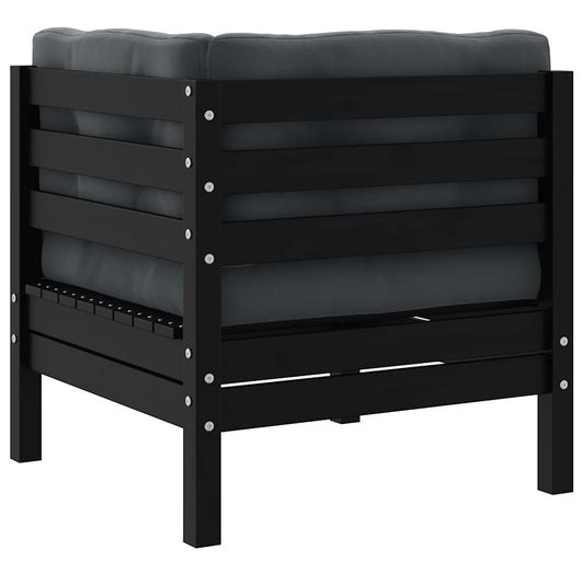Set Divani da Giardino 3 pz con Cuscini in Pino Massello Nero