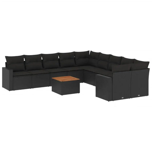 Set Divani da Giardino 11 pz con Cuscini in Polyrattan Nero