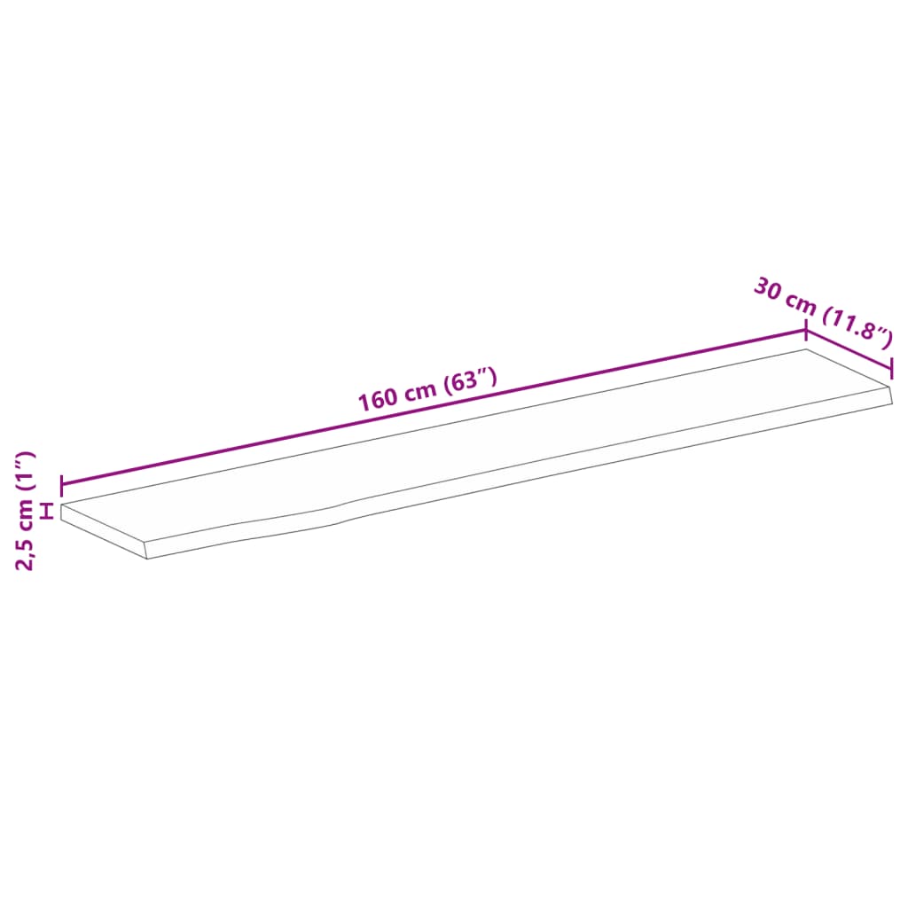 Piano Tavolo Bordi Vivi 160x30x2,5 cm Legno Massello di Mango