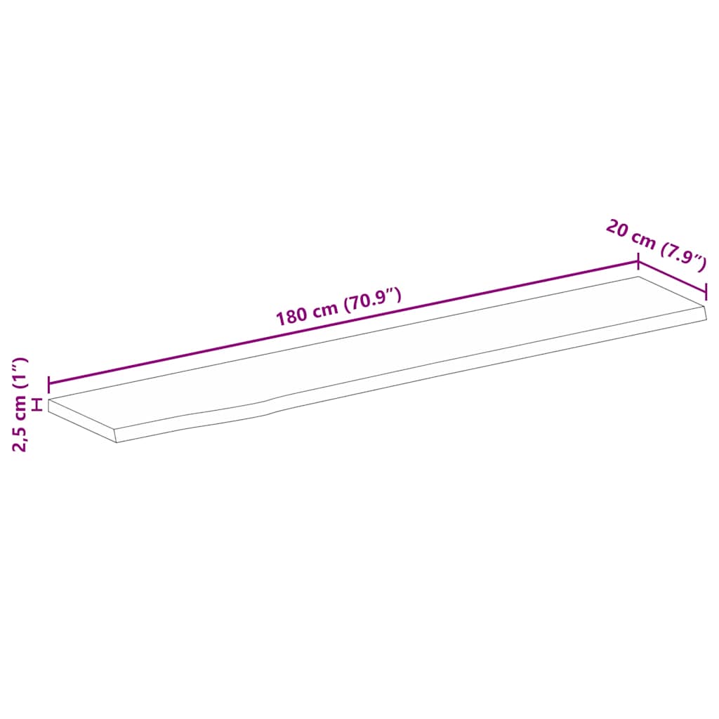 Piano Tavolo Bordi Vivi 180x20x2,5 cm Legno Massello di Mango
