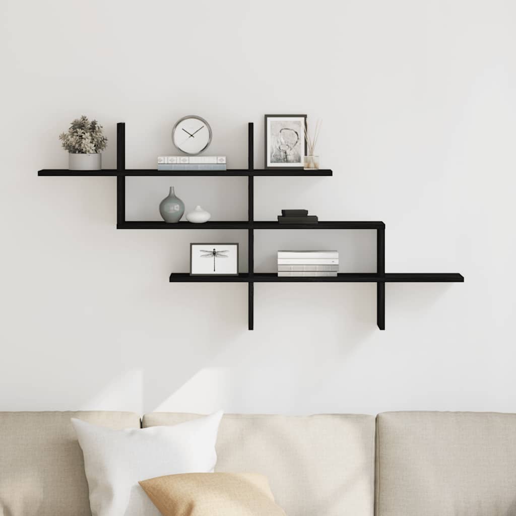 Scaffale a Parete Rovere Nero 124,5x18x60,5 cm in Truciolato