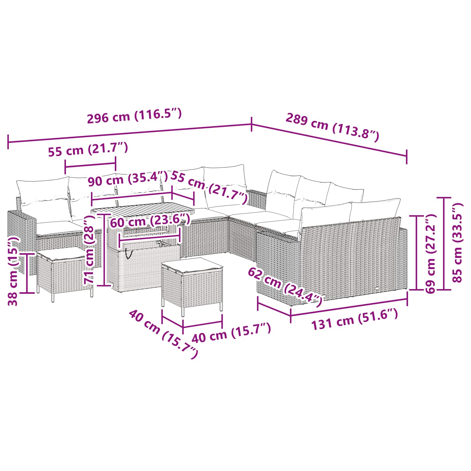 Set Divano da Giardino con cuscino 13 pcs Nero polyrattan