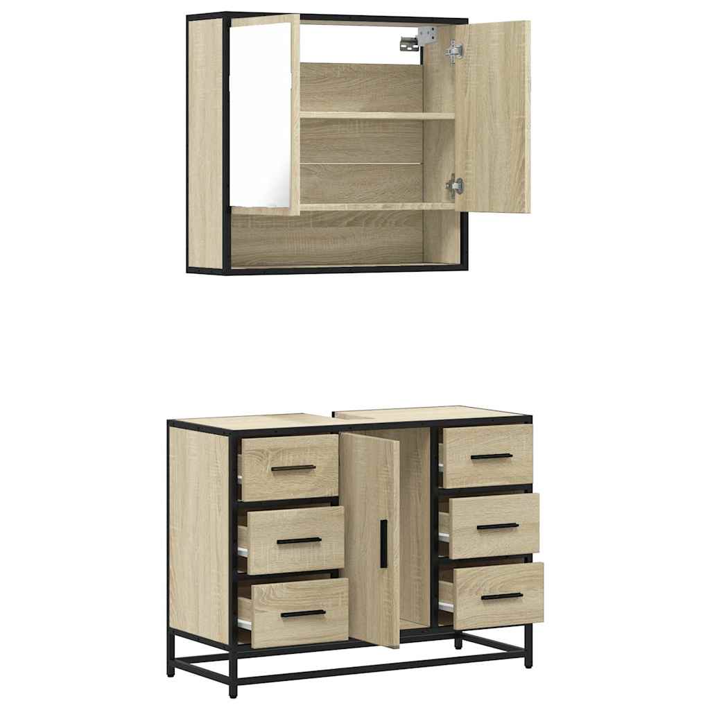 Set Mobili da Bagno 2 pz Rovere Sonoma in Legno Multistrato