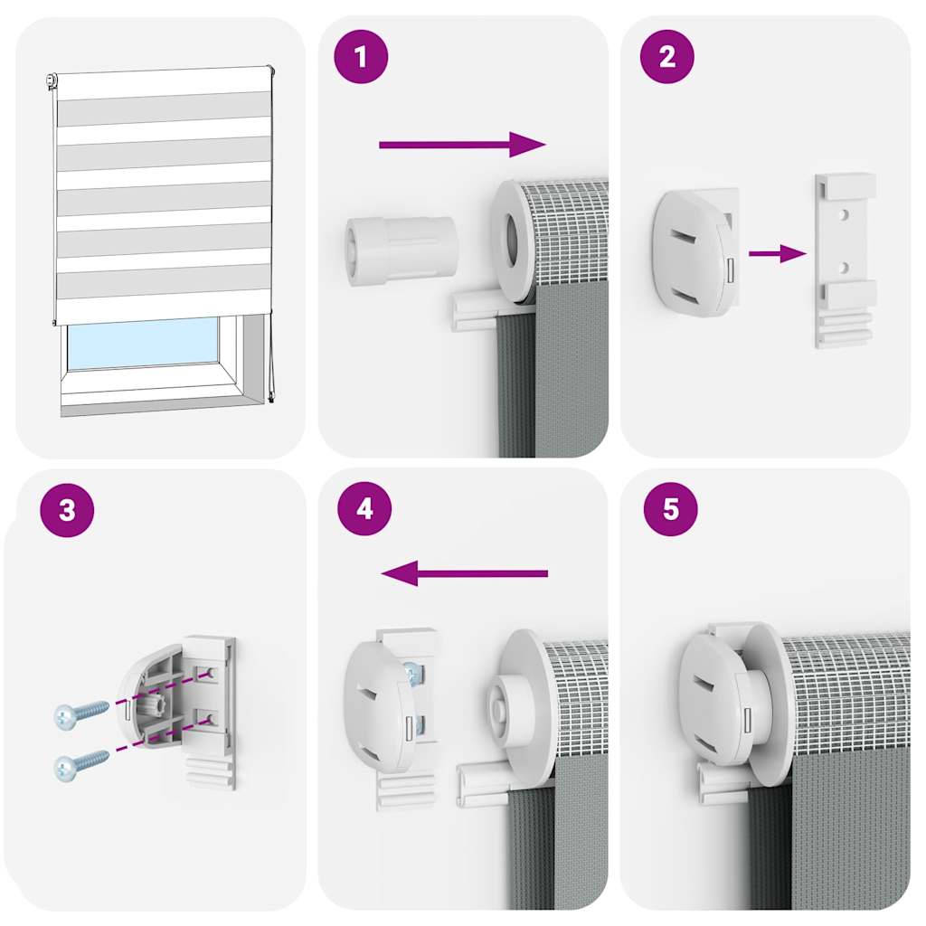 - Due modi di montaggio: A seconda delle esigenze, è possibile fissare la tenda a rullo zebrata alla parete o alla finestra con viti o senza trapano utilizzando staffe di serraggio.