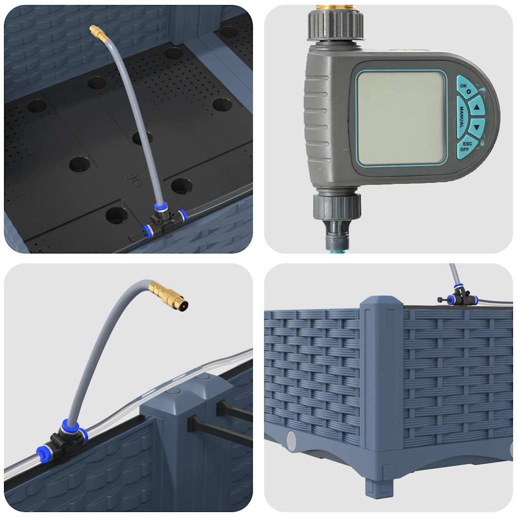 - Sistema di irrigazione integrato: Dotato di un sistema di irrigazione avanzato, questo vaso da giardino elimina le incertezze dell'irrigazione. Utilizzando canali integrati, distribuisce efficientemente l'acqua direttamente alle radici delle piante, garantendo che ricevano l'umidità adeguata riducendo gli sprechi d'acqua e supportando una crescita più sana.