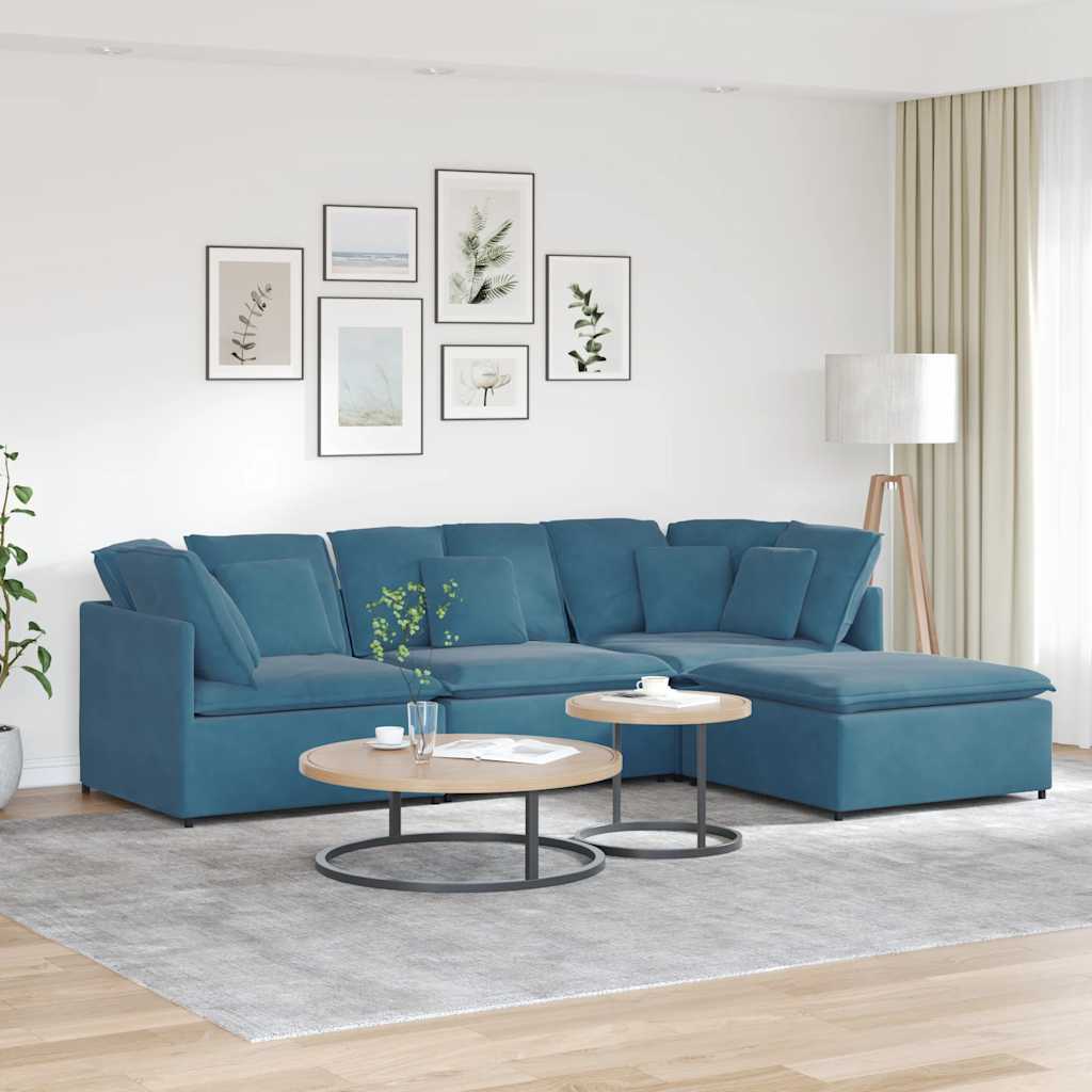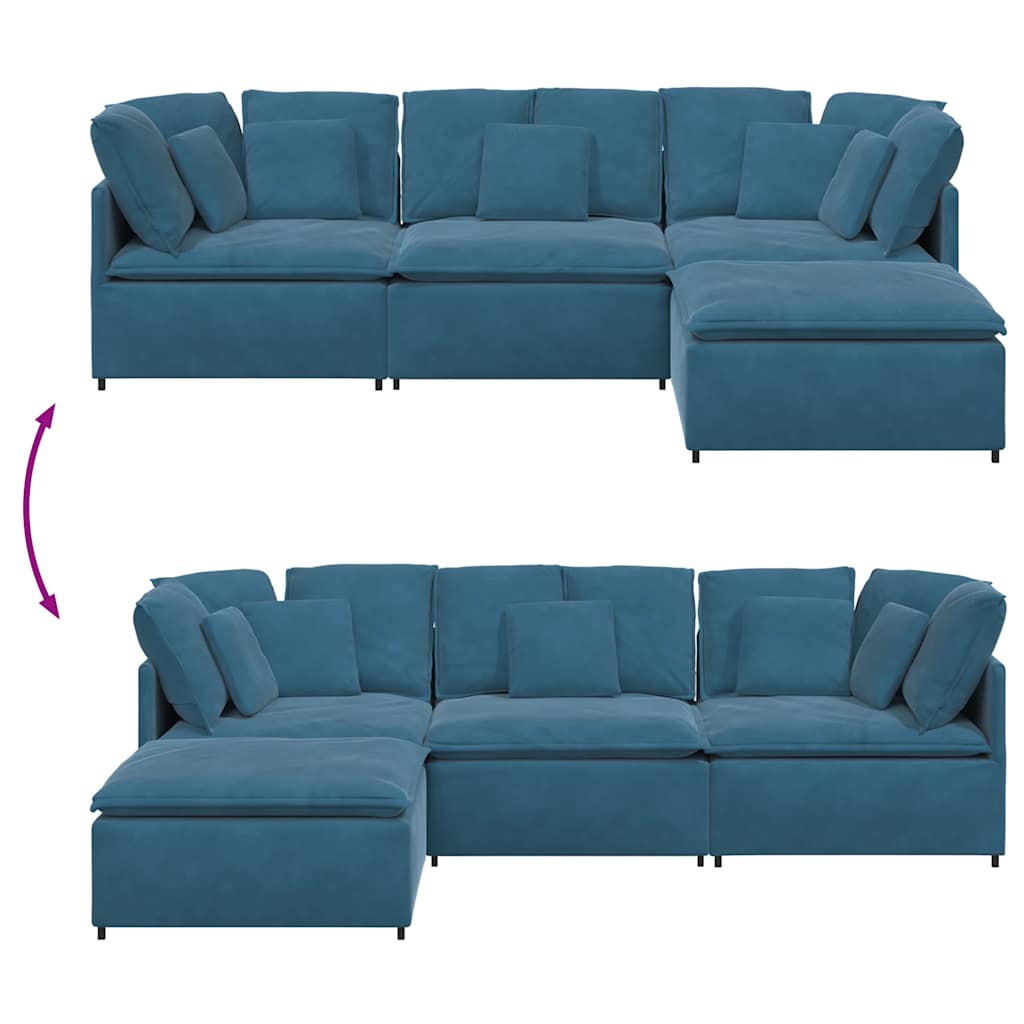 Divano Modulare con Poggiapiedi e Cuscini in Velluto Blu