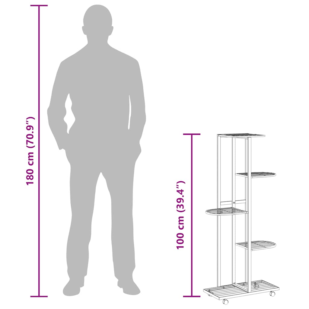 Fioriera a 5 Piani con Ruote 44x23x100 cm Ferro Nero