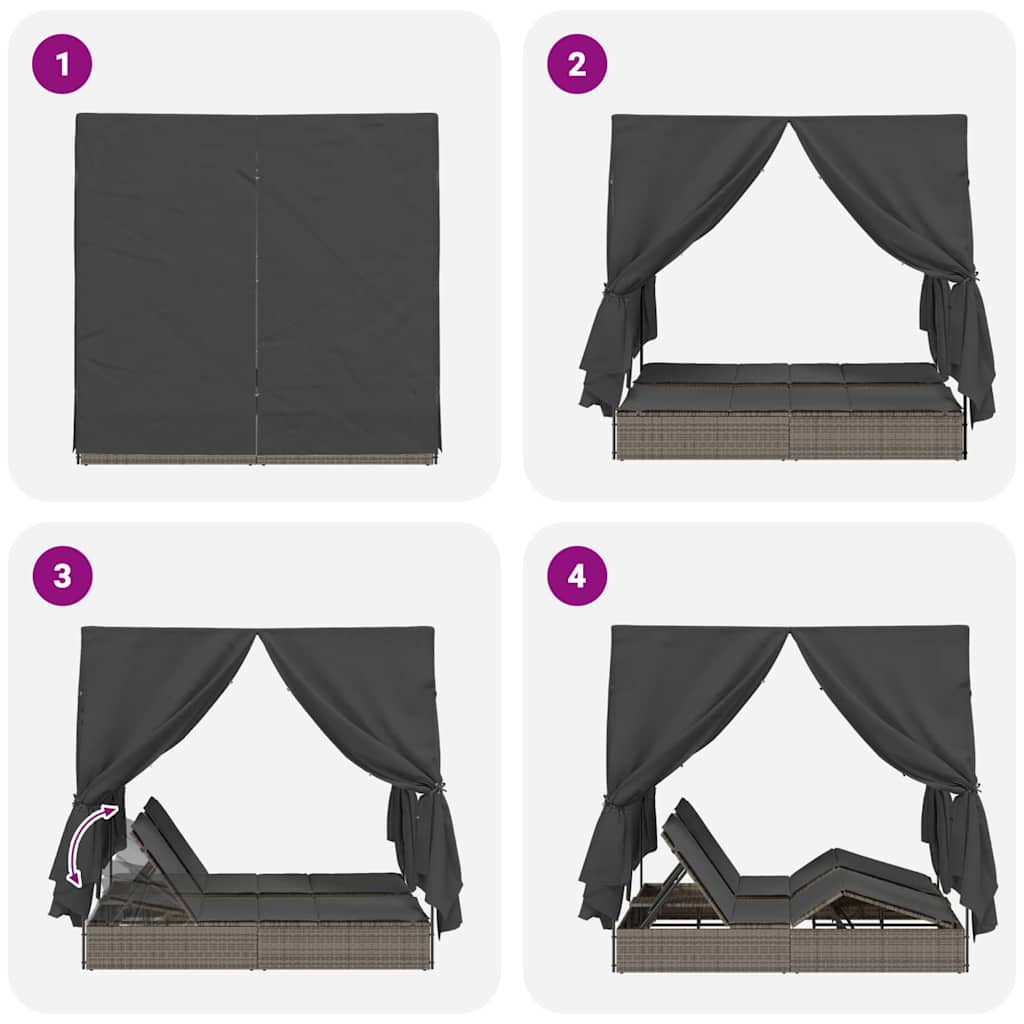 Lettino doppi con Tetto Grigio 205 x 129 x 200 cm Rattan PE