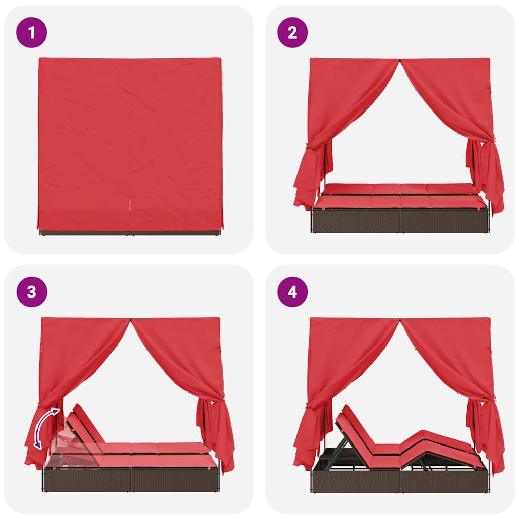 Lettino doppi con Tetto Marrone 205 x 129 x 200 cm Rattan PE