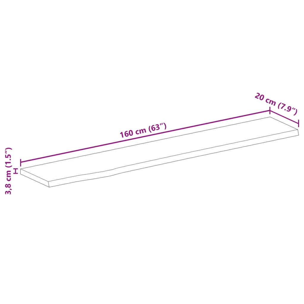 Piano Tavolo 160x20x3,8 cm Bordi Vivi Legno di Mango Grezzo