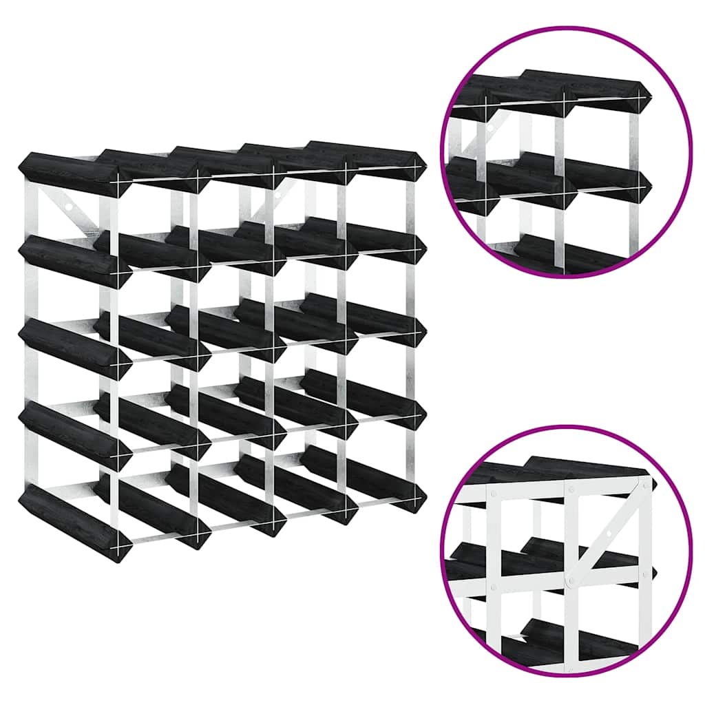 Portavini da 20 Bottiglie Nero in Legno Massello di Pino