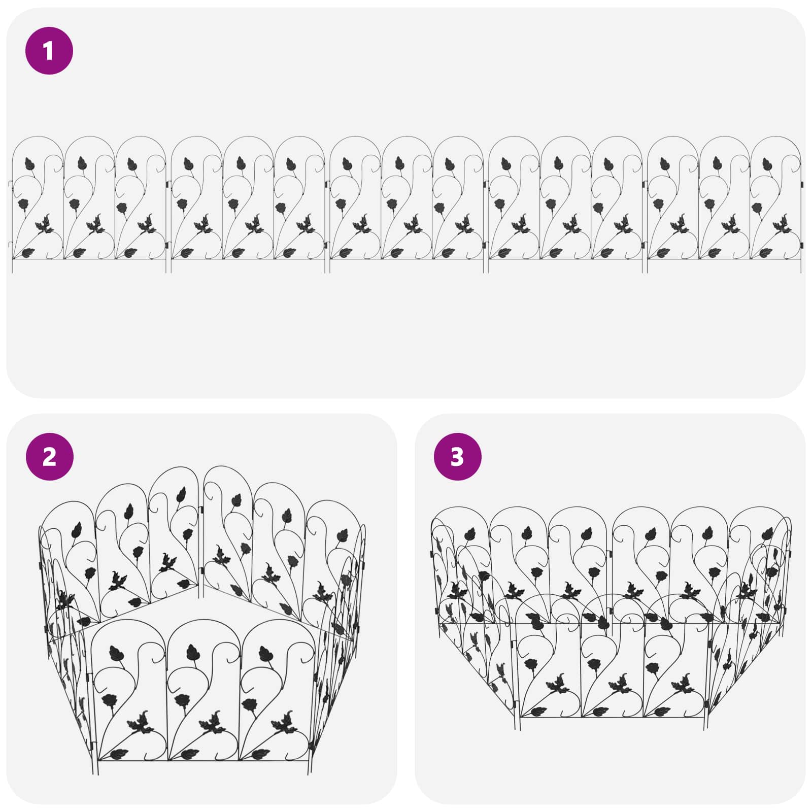 - Struttura in ferro robusta Fatto in ferro resistentissimo, questa recinzione unisce forza ed eleganza. Il telaio offre una barriera stabile, mantenendo quel charm rustico che si adatta benissimo a tanti stili di giardino. Il suo design assicura stabilità e prestazioni durature, resistendo bene alle intemperie e fornendo una separazione sicura ovunque.