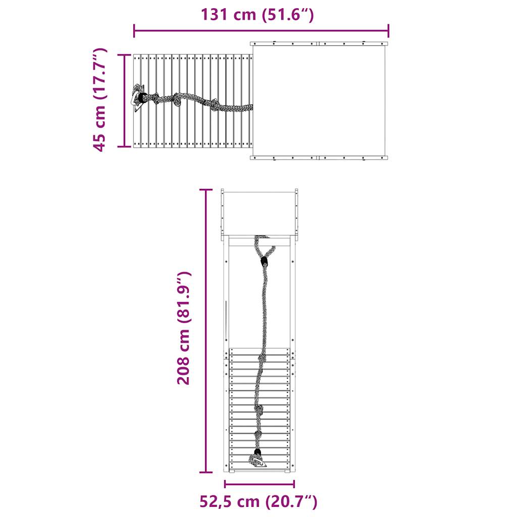 - Materiale resistente: Questa struttura da arrampicata è realizzata in legno massello di douglas. Il legno massello di douglas è noto per la sua resistenza e durata. Il suo colore ricco bruno-rossastro e le sue venature uniche emanano un'atmosfera calda e naturale. Con una buona stabilità e resistenza agli agenti atmosferici, è ideale per la realizzazione di mobili per ambienti interni ed esterni.