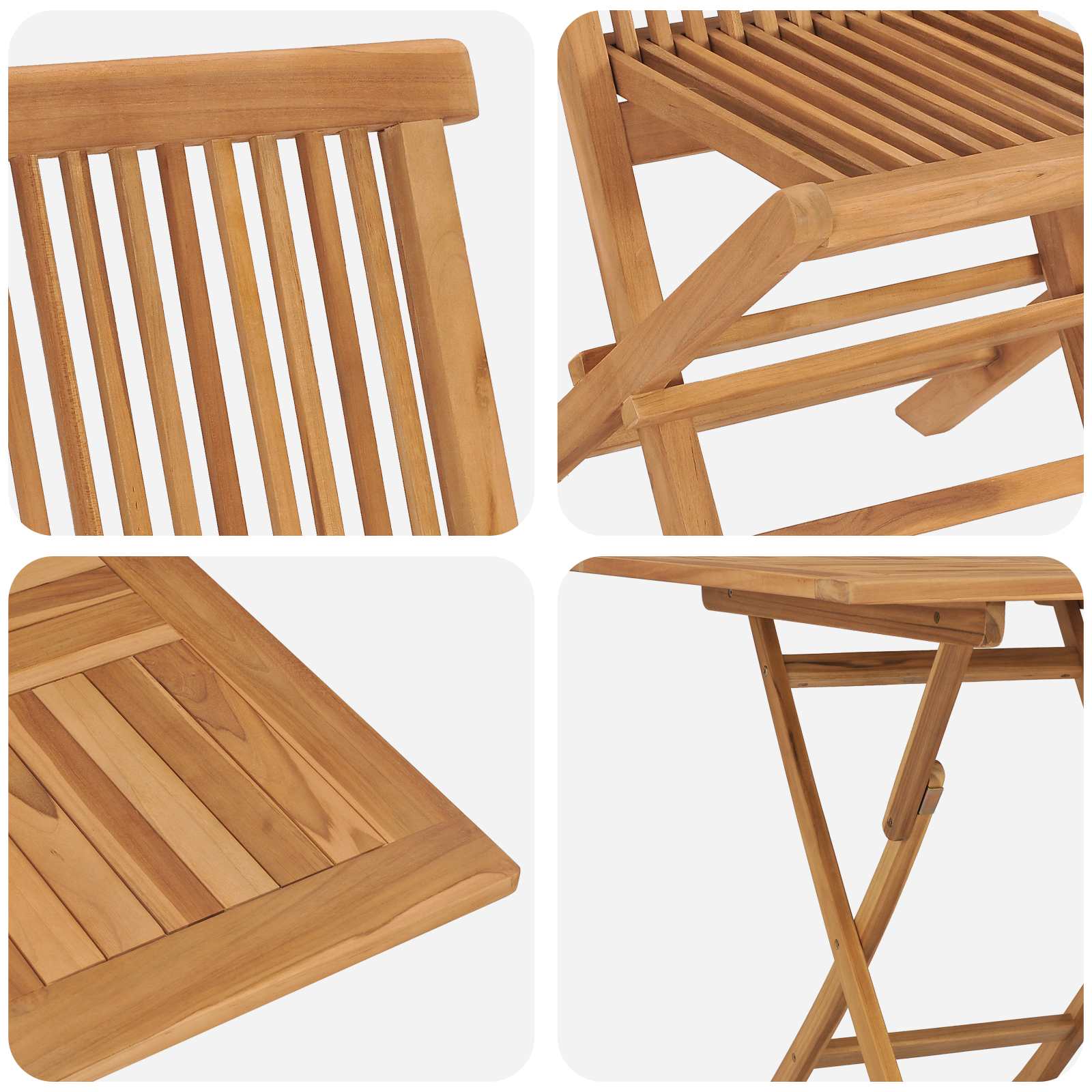 - Costruzione interamente in acacia L'intero set è fatto di legno massello di acacia, noto per la sua resistenza e capacità di affrontare le intemperie. La sua grana fitta e robusta lo rende perfetto per ogni stagione, assicurandoti una soluzione duratura per il tuo spazio esterno. La superficie rende il set ancora più caldo ed accogliente.