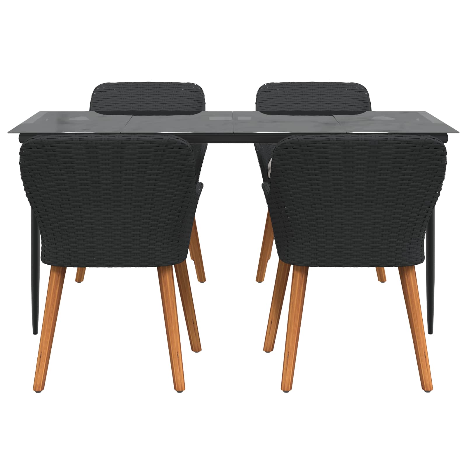 • Componenti Funzionali: Lo schienale in poly rattan e i braccioli solidi creano una seduta accogliente e ergonomica. Ogni parte del set è progettata per migliorare l'esperienza di pranzo, rendendo ogni incontro speciale.